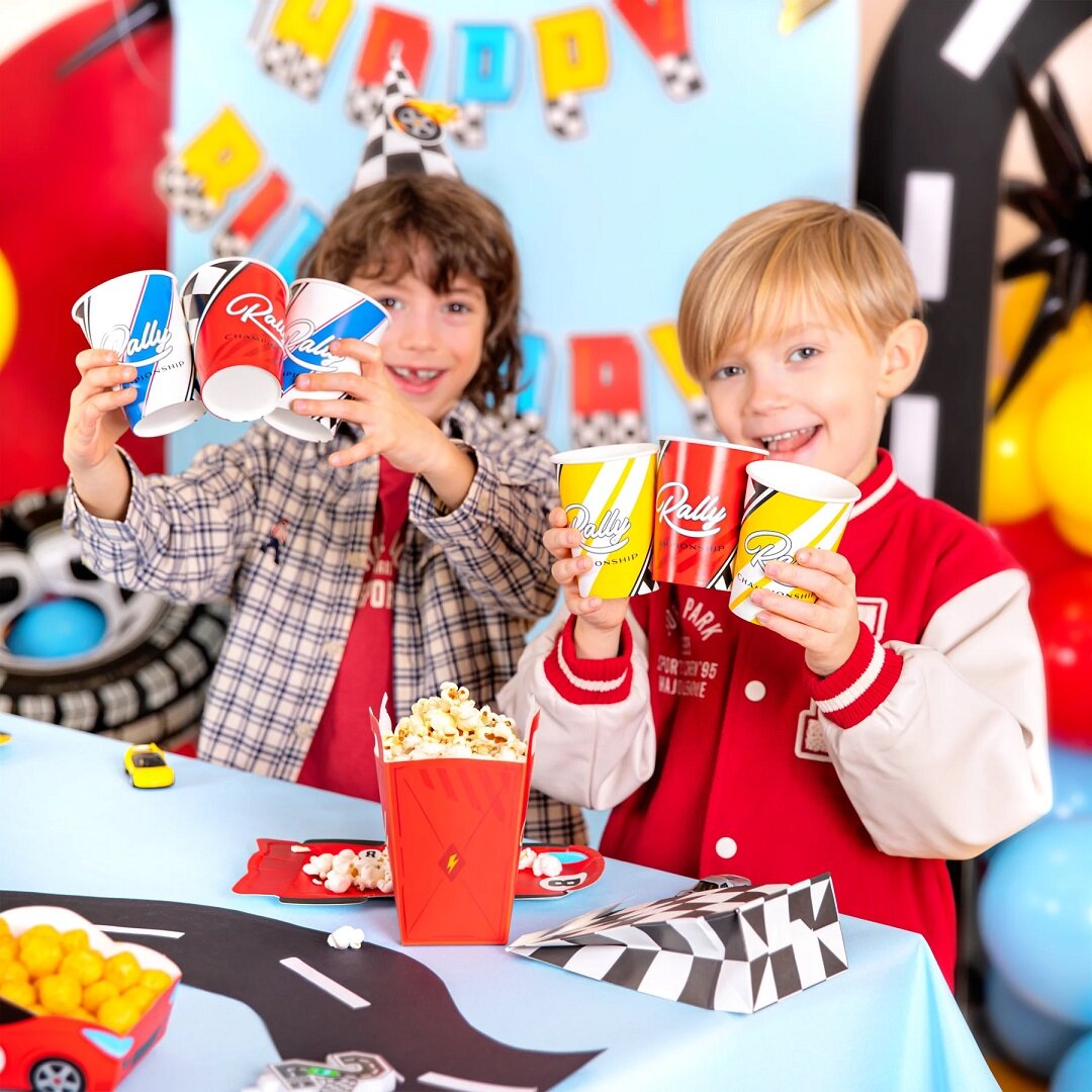 6 stk. papkrus med fartfyldt Rally Championship-motiv i gult, hvidt og rødt. Perfekte når du vil skabe en ensartet og sjov dækning til festen med Racing Car-tema.