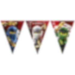 Sej flagguirlander med motiv på begge sider af LEGO Ninjago. En sjov dekoration at have med til festen. Flagbanneret er fremstillet af papir og er ca. 2,3 meter langt.