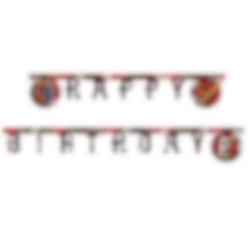 Rød guirlande med teksten "Happy Birthday" og motiver fra den populære LEGO Ninjago. Et rigtig godt tilbehør til festen med LEGO Ninjago som tema. Guirlanden er ca. 2 meter lang og er lavet af FSC-mærket papir.