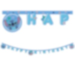 Lækker guirlande af pap i blåt med teksten "Happy Birthday" og fine motiver fra Lilo & Stitch. Guirlanden er 2 meter lang.