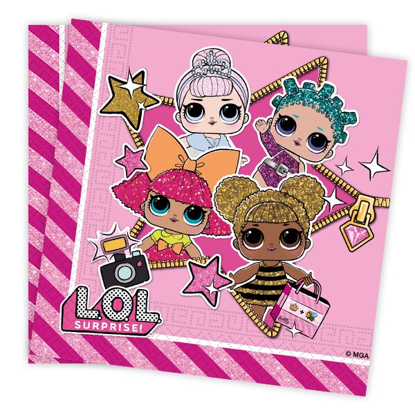 Fejr fødselsdagen med LOL Surprise! Her finder du masser af farverige festtilbehør til børnefødselsdagen med LOL Surprise-tema. Her kan du finde alt fra flotte tallerkner, papkrus og servietter til dekorationer og balloner med motiver af de populære dukkerne fra LOL Surprise. Ja, vi har endda slik og sjove bagetilbehør, som er perfekte, når du inviterer til en LOL Surprise-fødselsdagsfest!