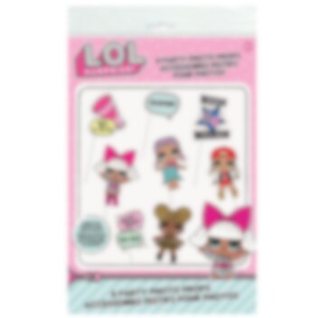 8 stk. photo props med sejt LOL Surprise motiv. Brug disse til at tage sjove billeder til festen.