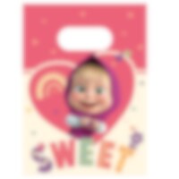 4 slikposer af papir med et sødt motiv af Masha foran et stort hjerte, dekoreret med små hjerter, regnbuer og farverige detaljer. Perfekte at fylde med slik, småt legetøj eller sjove overraskelser, som børnene kan tage med sig hjem fra børnefødselsdagen. ✔️ Størrelse: cirka 22 x 13 cm ✔️ Fremstillet af miljøvenligt FSC-certificeret papir