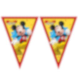 Farverig flagguirlande af papir med motiv af Mickey Mouse. En fin dekoration, der skaber en festlig stemning til fødselsdagen.
