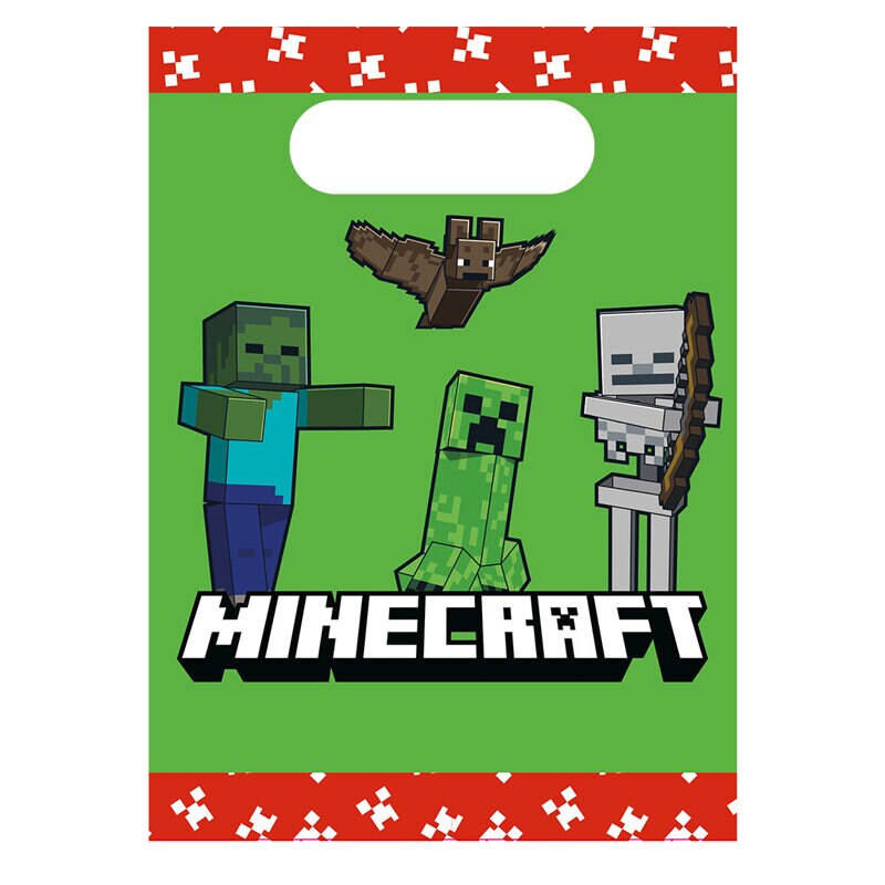 4 stk. slikposer med seje motiver fra Minecraft. Fyld poserne med slik og sjove overraskelser og giv dem derefter til børnene på børnefødselsdagen.
