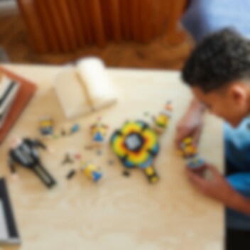 Glæd et barn, der elsker Minions-legetøj, med LEGO® Grusomme mig 4 sættet Klodsbygget Gru og Minions (75582). Det kreative byggelegetøj til børn fra 9 år indeholder en byggefigur af Gru omgivet af dansende Minions-figurer, og det er dermed den perfekte lege- og udstillingsgave til børn og fans af Grusomme mig-filmene. Den store Gru-figur har leddelte arme, hænder og fingre, som børn kan sætte i sjove positurer. Og så er der 5 Minions-figurer, der kan bygges: Jerry med maracas og frugthat, hemmelige agent Dave med en hovedpropel og walkie-talkie, sirene-minion med en megafon, ukulelespillende Mel og Kevin med sin prutpistol. De 5 minions er placeret på en roterende platform, og når børn drejer den siddende minion, danser de andre minions rundt om deres smilende chef! Hver minion kan bevæge hænderne og holde tilbehør. Deres hoveder kan bevæge sig, og øjnene kan ændres for at skabe forskellige udtryk. Børn kan tage 4 af de sjove minions af standen for at få endnu flere legemuligheder.