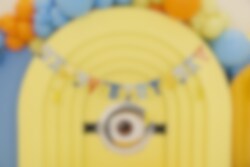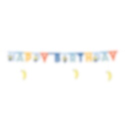 Guirlande i pap med farverige bogstaver og sjove Minions motiver, der tilsammen danner teksten "Happy Birthday". En sjov og iøjnefaldende dekoration, der passer godt til at hænge op på væggen, over fødselsdagsbordet eller i døråbningen for at skabe en festlig stemning med det samme.