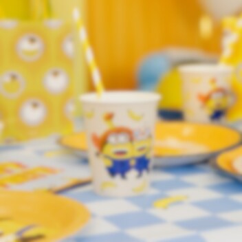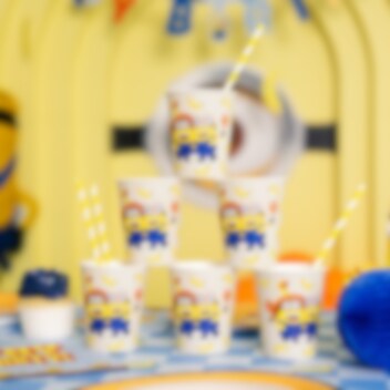 6 papkrus med sjove motiver af Minions, hvor farverige detaljer og små bananmønstre skaber en glad og festlig stemning. De er velegnede til at servere saft eller andre drikkevarer og bidrager til en flot og sammenhængende borddækning. Krusene er ca. 10 cm høje og rummer 250 ml.