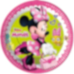 8 stk. søde paptallerkener med motiv af Minnie Mus. Tallerkenerne er ca. 23 cm i diameter.