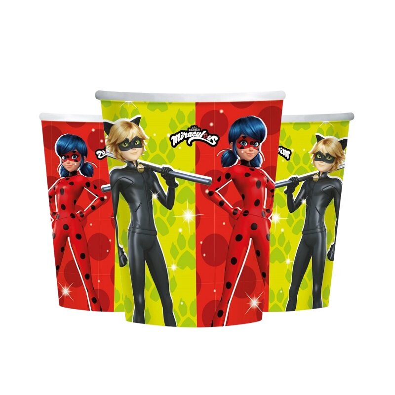 Dæk bordet til en børnefødselsdag med Miraculous Ladybug! Her finder du festartikler, såsom tallerkner, krus og servietter med motiver fra Miraculous Ladybug. Temaet er desuden komplementeret med balloner, flagguirlander, serpentiner og andre smukke festartikler i rødt og sort, der passer perfekt til serien fra Miraculous Ladybug & Cat Noir.