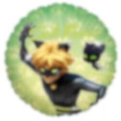 Folieballon med flot motiv af Cat Noir fra Miraculous Ladybug. Ballonen er 45 cm i diameter og kan fyldes med luft eller med helium. Ballonen har en selvlukkende ventil og for at puste den op med normal luft skal du bruge en ballonpumpe, alternativt et sugerør.