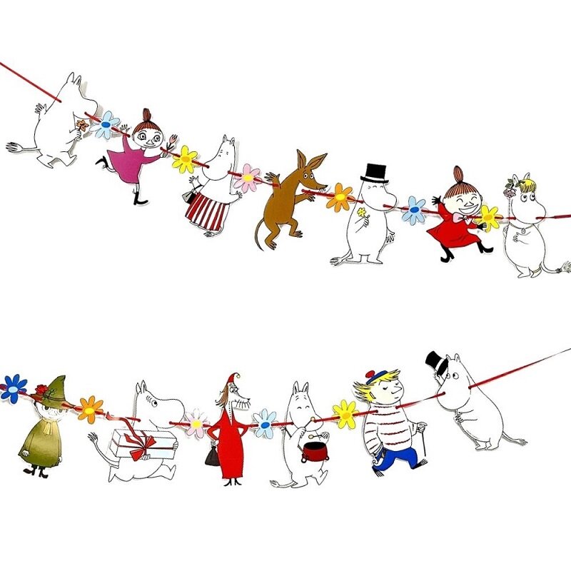 Lad Mumidalens magi lyse op din børnefødselsdag med denne charmerende guirlande! Med en længde på 2 meter og dekoreret med Mumitroldene og deres venner skaber den en eventyrlig atmosfære, som forvandler børnefødselsdagen til et rigtigt eventyr. Den er lavet af FSC-mærket pap.