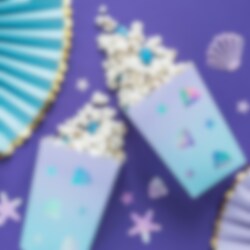 6 stk popcornbægre af pap, der er 7 x 7 x 12,5 cm.