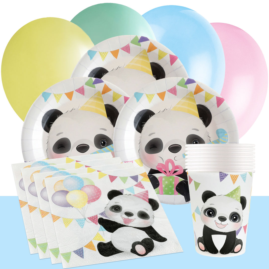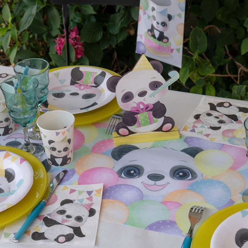 Farverig bordløber med mønster af søde pandaer. Flot at dække festbordet med, når det er tid til fødselsdagsfest.