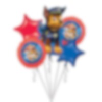 Flot ballonbuket med pænt Paw Patrol-motiv. En god ting at pynte op med til festen. Pakken indeholder en supershape-ballon (78 x 83 cm), 2 stk. runde folieballoner (43 cm) og 2 stk. stjerneformede folieballoner (48 cm).