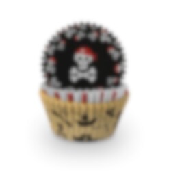 75 stk muffinforme i 3 forskellige farver med sejt piratmotiv. Bag seje muffins/cupcakes med disse forme når du skal holde piratfest. Formene er ca. 5 cm i bunden.