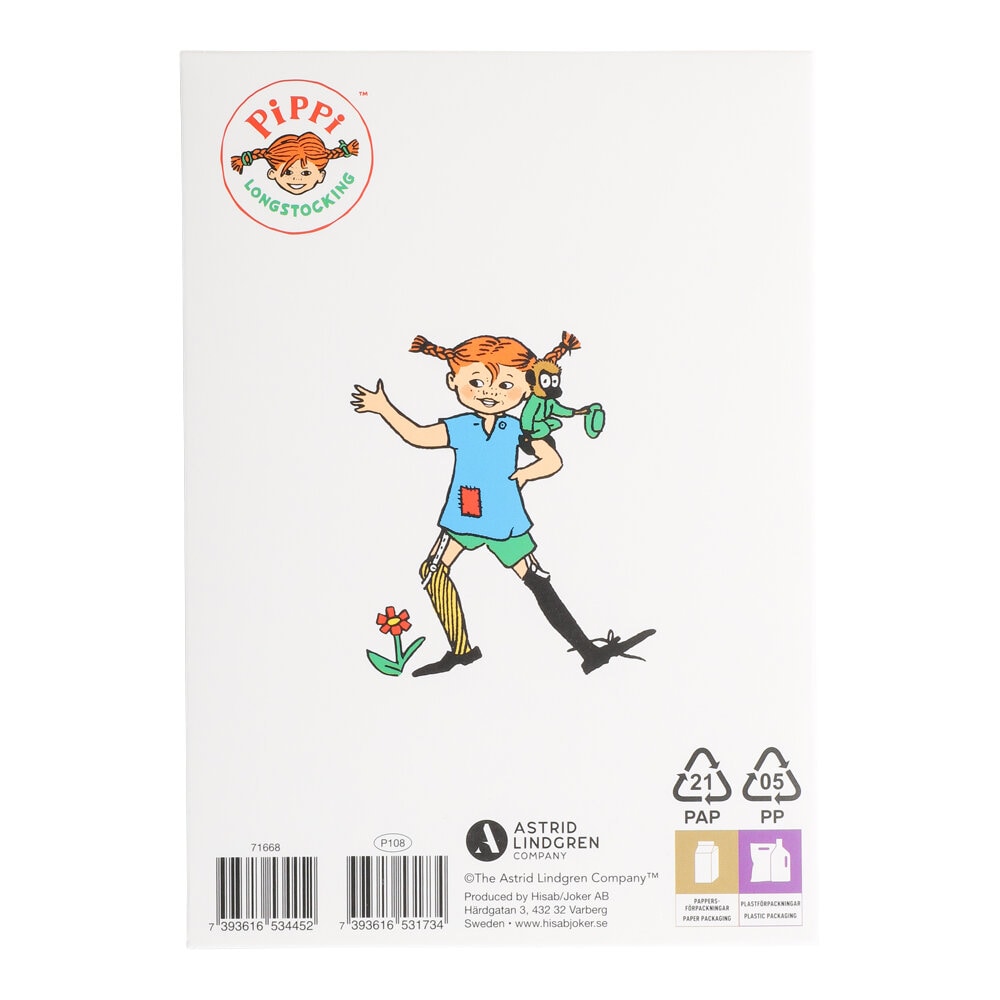 Inden i kortet er der god plads til en personlig hilsen og en lille illustration med gaver og bagværk, der giver kortet en ekstra festlig følelse. Et perfekt kort til alle, der elsker de klassiske historier om Pippi Langstrømpe.