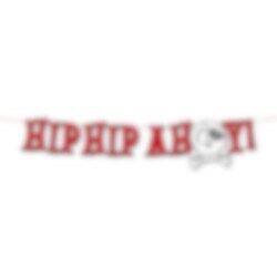 Skab en sjov og festlig piratstemning til fødselsdagen med denne dekorative guirlande med teksten "Hip Hip Ahoy!". Den røde tekst sammen med det klassiske dødningehoved gør den til en rigtig flot detalje, som passer perfekt til en piratfødselsdag eller en piratfest.