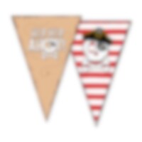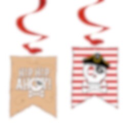 Skab en festlig piratstemning i rummet med disse hængende swirls i klassisk pirattema. De skinnende røde spiraler kombineres med dekorative motiver som teksten "Hip Hip Ahoy!" og et dødningehoved med pirathat, hvilket gør dem til et meget fint indslag til en piratfødselsdag.