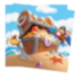 16 stk. fine servietter med motiv af en skattekiste, fyldt med skatte, samt en piratpapegøje på en sandstrand. Servietterne er 2-lags og er ca. 33 x 33 cm store, når de er foldet ud.