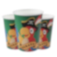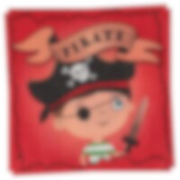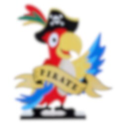 Borddekoration i træ med motiv af en farverig papegøje klædt ud som pirat. Dekorationen er 15 x 20 cm stor.