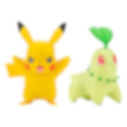 2 stk. små actionfigurer, der forestiller Pikachu og Chikorita fra Pokémon. Perfekt til at lege med din bedste ven for at se, hvem der er den stærkest.