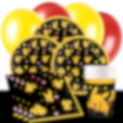 Denne færdige Pokémon festpakke inkluderer Pokémon tallerkner (23 cm), Pokémon papkrus (237 ml) og Pokémon servietter (33 x 33 cm) til 8, 16 eller 24 personer. Derudover indgår 10 stk. gule og 10 stk. røde balloner og en sort plastikdug (137 x 274 cm). I pakken til 24 gæster indgår der 2 stk. bordduge.