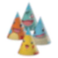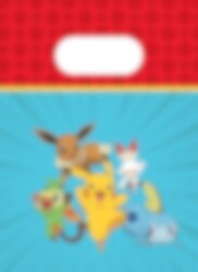 4 slikposer af papir med et farverigt Pokémon-motiv, hvor Pikachu, Eevee, Scorbunny, Grookey og Sobble springer frem mod en blå baggrund med rød Pokéball-kant. Perfekte at fylde med slik, småt legetøj eller overraskelser, som børnene kan tage med sig hjem efter fødselsdagen.
