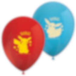 Få en sjov stemning på børnefødselsdagen med disse farverige Pokémon-balloner! Ballonerne er i blåt og rødt med motiver af Pikachu og Eevee.