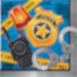 16 stk. servietter med motiver i polititema. Servietterne er 2-lags, ca. 33 x 33 cm.