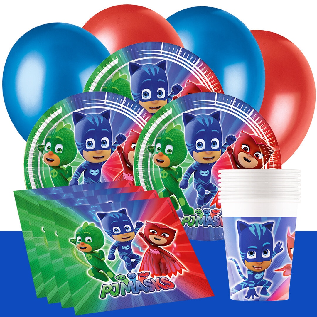 Inviter til en uforglemmelig fødselsdagsfest med Catboy, Owlette og Gekko fra Pyjamasheltene! Her finder du et bredt udvalg af festartikler med motiver fra Pyjamasheltene. Her kan du finde alt fra flotte tallerkner, krus og servietter til stilfulde dekorationer og balloner.