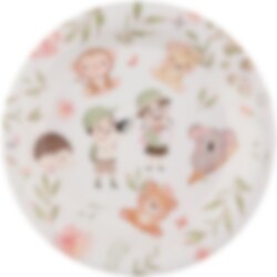 10 paptallerkener med motiver af søde små safaridyr, blade og små opdagelsesrejsende. Passer godt sammen med tilbehør fra samme safaritema. Tallerkenerne er ca. 22,5 cm høje.