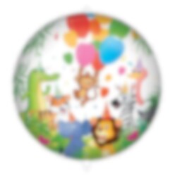 Rund folieballon med dobbeltsidet sødt motiv fra temaet Jungle Balloons. Perfekt til at puste op og pynte med til din fødselsdagsfest.