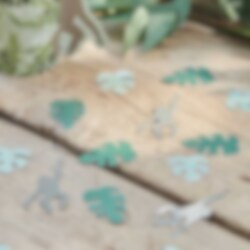 Flot konfetti med aber og grønne palmeblade i papir. Pynt bordet med dette, når det er tid til en junglefest. Passer perfekt sammen med vores andre relaterede varer i Let's Go Wild-temaet! Pakken indeholder ca. 13 gram. Produktet og emballagen er både genanvendelige og FSC-certificerede.
