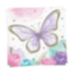16 stk. små servietter med motiver af farverige sommerfugle. Servietterne har 2 lag og er 25 x 25 cm udfoldede.