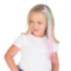 Fint sommerfugl hårklip med 40 cm lange pastelfarvede extensions, perfekt som sjovt tilbehør til dit sommerfuglekostume. Dette hårklip giver et legende og farverigt touch, der løfter dit outfit til næste niveau.