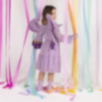 Smuk folieballon der forestiller sommerfuglevinger i lilla farve. Perfekt som dekoration til sommerfuglefesten og også som et kostumetilbehør.