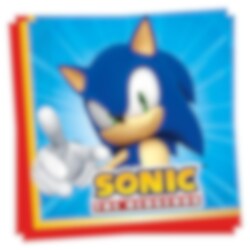 20 stk. servietter med motiver fra Sonic the Hedgehog. Servietterne har 2 lag og er 33 x 33 cm udfoldede. Lavet af FSC-certificeret papir.