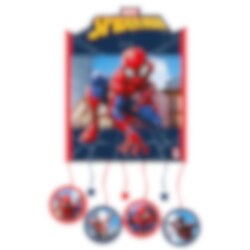 En fin enkel pinata med et motiv af den seje Spider-Man. Fyld pinataen med forskellige små slik og små stykker legetøj. Denne pinata er en pinata med snore og åbnes ved at trække i den rigtige snor, og alle overraskelserne falder ud. Pinataen sælges uden indhold og måler ca. 21 x 27 cm.