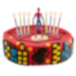 Sejt kagelys med motiv og form af superhelten Spiderman til at pynte fødselsdagskagen med. Lyset er ca 7 cm højt og 5,5 cm bredt.