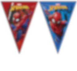 Sejt flagguirlande med motiv af Spiderman på begge sider. En sjov dekoration til festen. Flagbanneret er lavet af plast og er 2,3 meter langt.