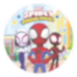 Kageprint af vaffelpapir med flot motiv fra Spidey and His Amazing Friends. Bag din egen kage til børnefødselsdagen med Spidey-tema og placer dit vaffelpapir på toppen. Billedet, som er 20 cm i diameter, er nemt at bruge. Vores kageprint af vaffelpapir er desuden både gluten- og laktosefri og uden tilsat sukker. Passer til vegetarer.