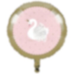 Folieballon i farverne, lyserød, guld og hvid og med motiv af en dejlig svane. En imponerende dekoration, der kan dekorere festen med stilfuld svane som tema. Ballonen er oppustet ca. 45 cm i diameter og er lettest oppustet med helium.