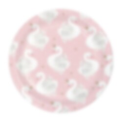 8 stk. paptallerkener i en lyserød farve med et smukt motiv af svaner og guldstjerner. Et passende bordkomplement til festen med svanetema. Paptallerkener er ca. 18 cm i diameter.