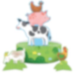 3 stk. borddekorationer af papir, der forestiller forskellige bondegårdsdyr. Pakken indeholder en lidt større borddekoration, der forestiller en ko, gris og en høne samt to lidt mindre dekorationer af en ged og en hane. Borddekorationerne er lavet af papir og du sætter dem selv sammen. Dekorationerne er 31 x 23 cm og 12 x 15 cm i størrelsen.