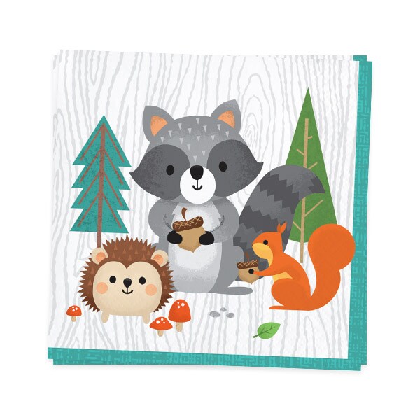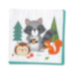 16 stk. små servietter i pæne farver med motiver af søde skovdyr på begge sider. Velegnet til at dække bordet med til festen hvor Woodland Animals er tema. Servietterne er 2-lags og er ca. 25 x 25 cm store udfoldet.