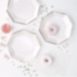 Hvide og rosaguld prikkede tallerkner 8 stk