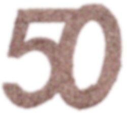6 stk. glitrende store konfetti i rosaguld til at dekorere med til 50-årsfesten. Konfettien er formet som tallet 50 og er 6 x 6 cm store. De er lavet af pap.