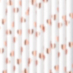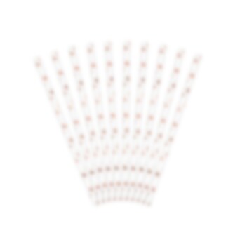 10 stilfulde sugerør i hvidt papir med motiver af søde rosa guldhjerter. Super flot til at dække bordet til dit baby shower, baby shower eller en anden festlig begivenhed.