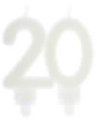 Kagelys, der lyser i mørket, elegant formet som tallet 20. Kagelyset har en størrelse på 7,5 x 9 cm.